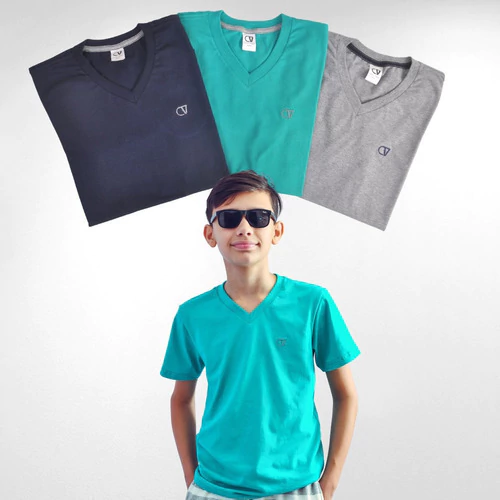 Kit com 3 Camisetas Manga Curta Infantil - 100% Algodão