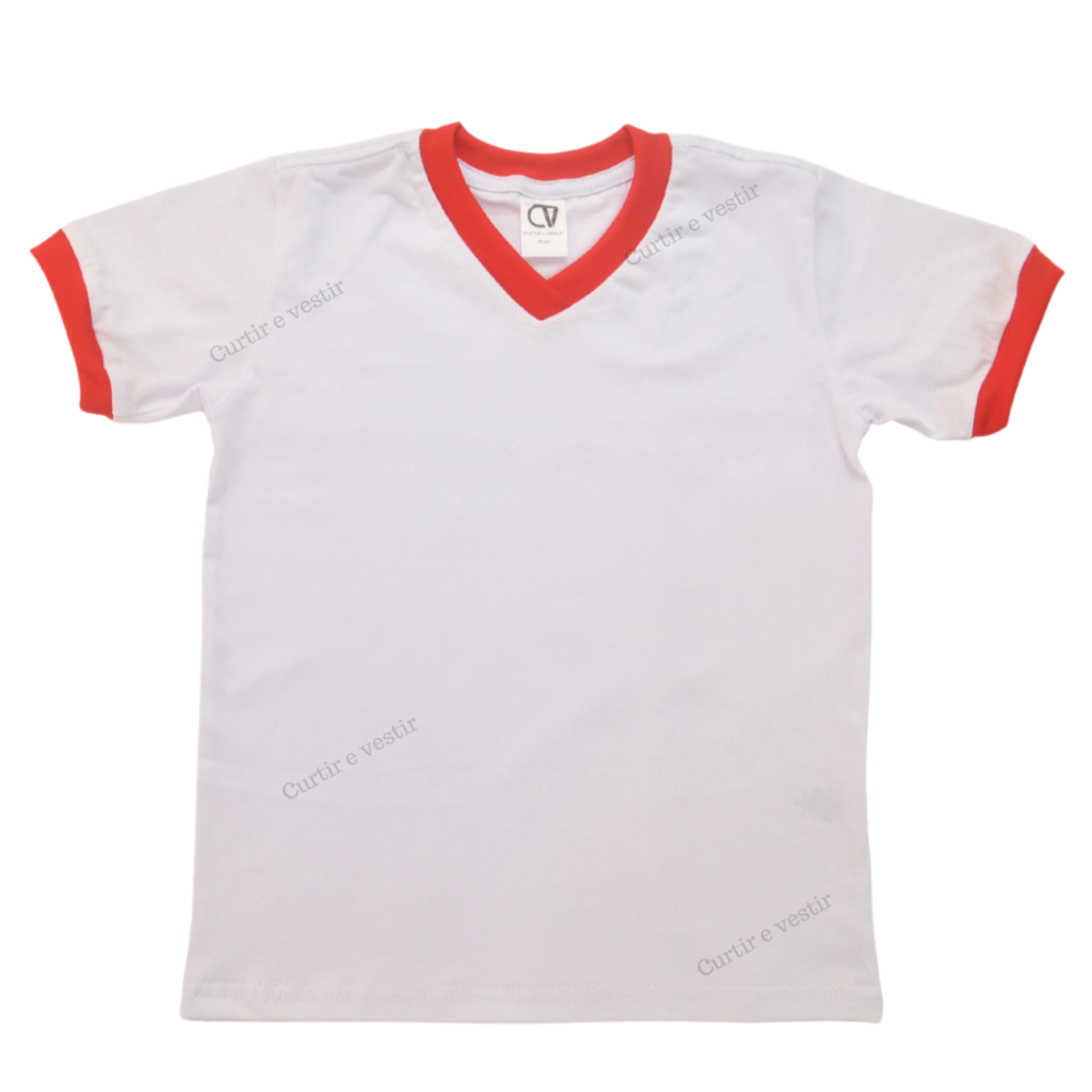 Branco - Gola e Punho Vermelho